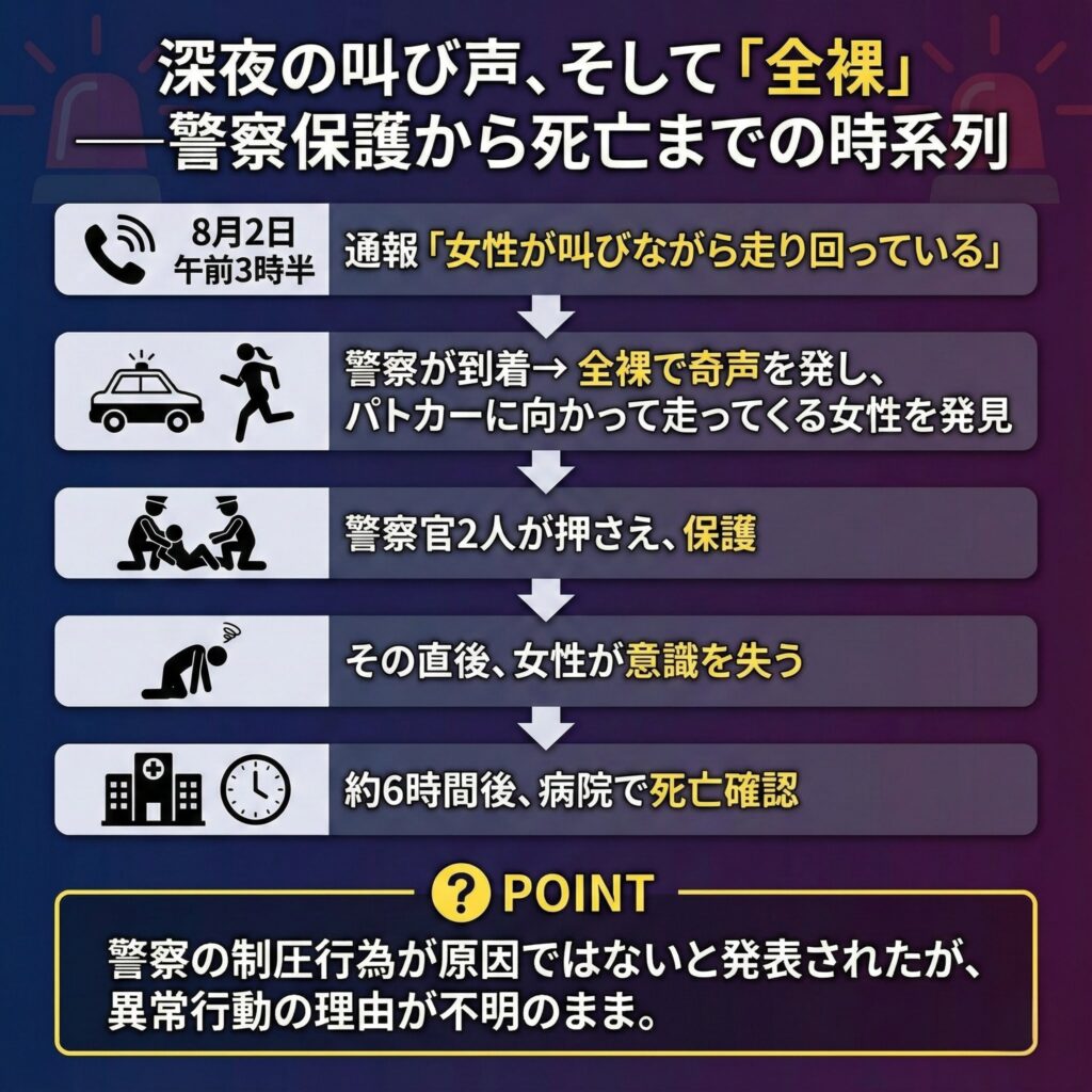 第1章:深夜の叫び声、そして「全裸」──警察保護から死亡までの時系列