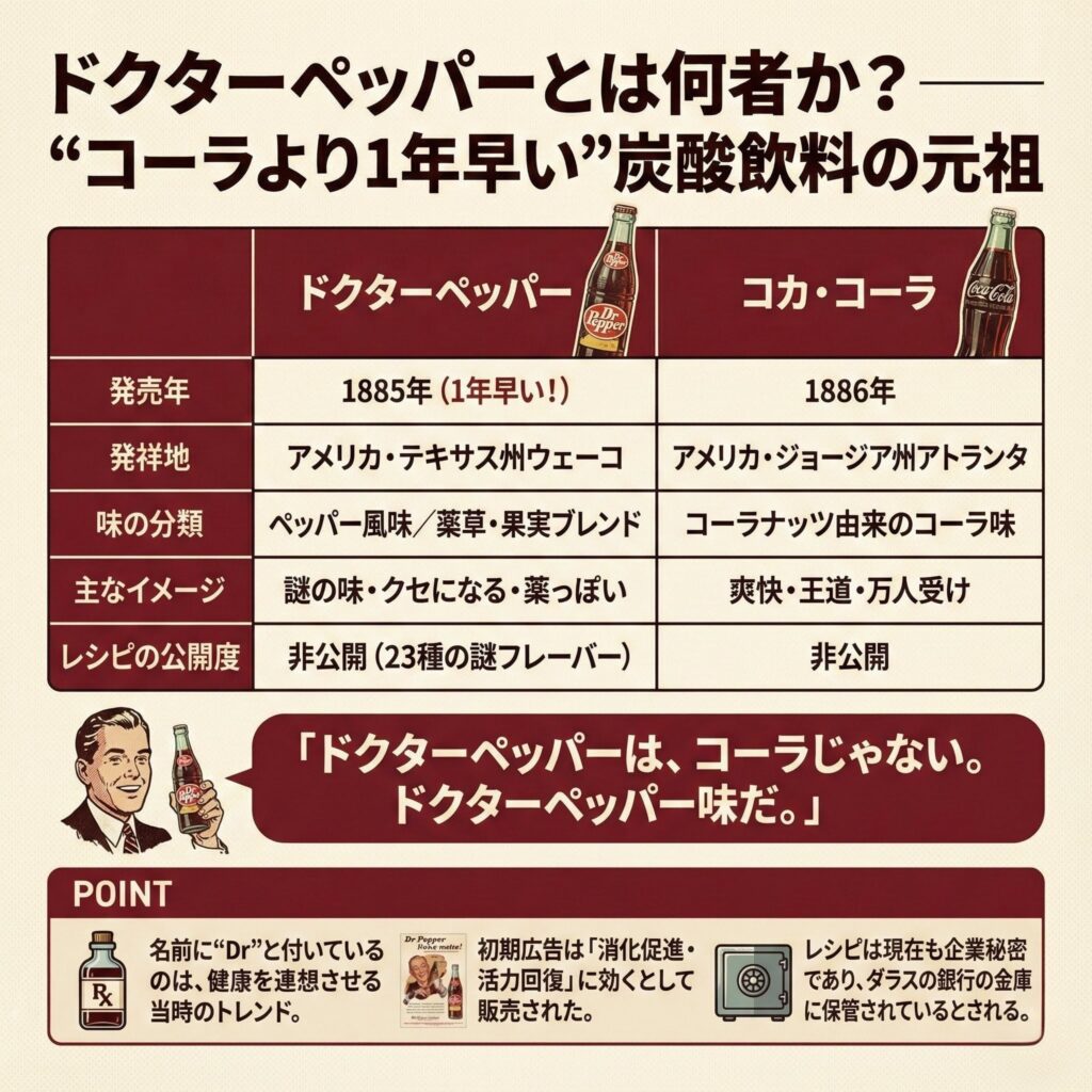 第1章:ドクターペッパーとは何者か?──“コーラより1年早い”炭酸飲料の元祖