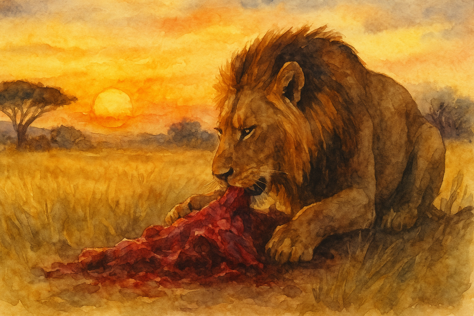ライオンは自然そのものが設計した究極の完全栄養食システムの上に立っているのだ。