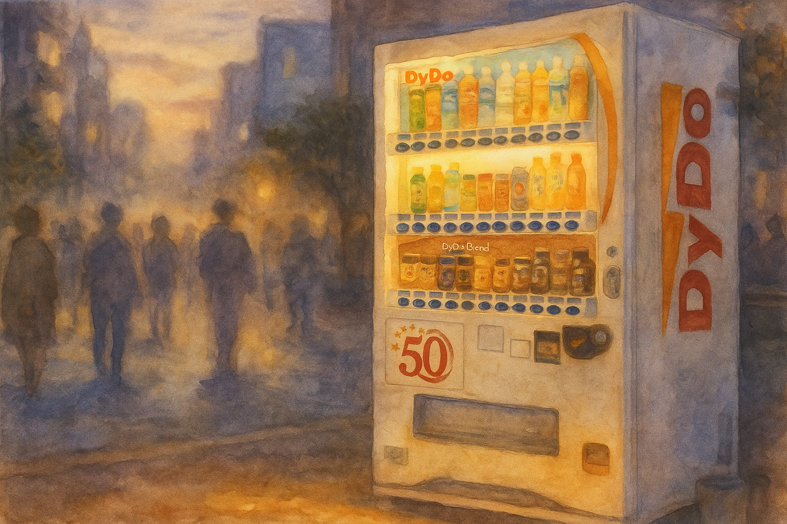 街角の自動販売機で、次に「DyDo Drinco」のロゴを見かけた時。
