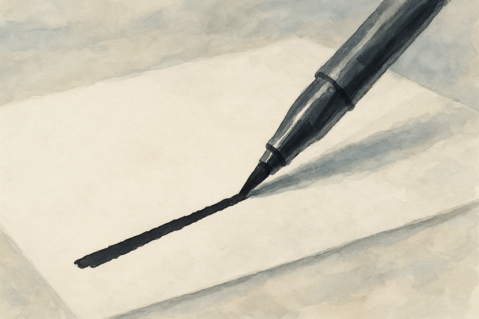 • ペン内部の吸収体は、無数の微細な隙間を持つ構造になっており、これが毛細管の集合体として機能する。その結果、ペン先から浸透した墨汁が、この毛細管現象によって、ゆっくりと、しかし確実に、空になった吸収体全体へと吸い上げられていくのだ。