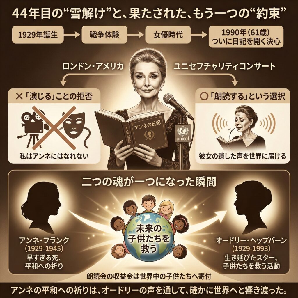 アンネ・フランクが夢見た平和への祈りは、生き残ったオードリー・ヘップバーンの声を通して、確かに世界へと響き渡ったのである。