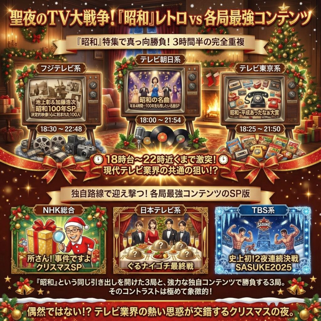 本稿は、この2025年の聖夜に起きた特異なテレビ編成の謎を、時代の節目と現代人の深層心理から解き明かすレポートである。