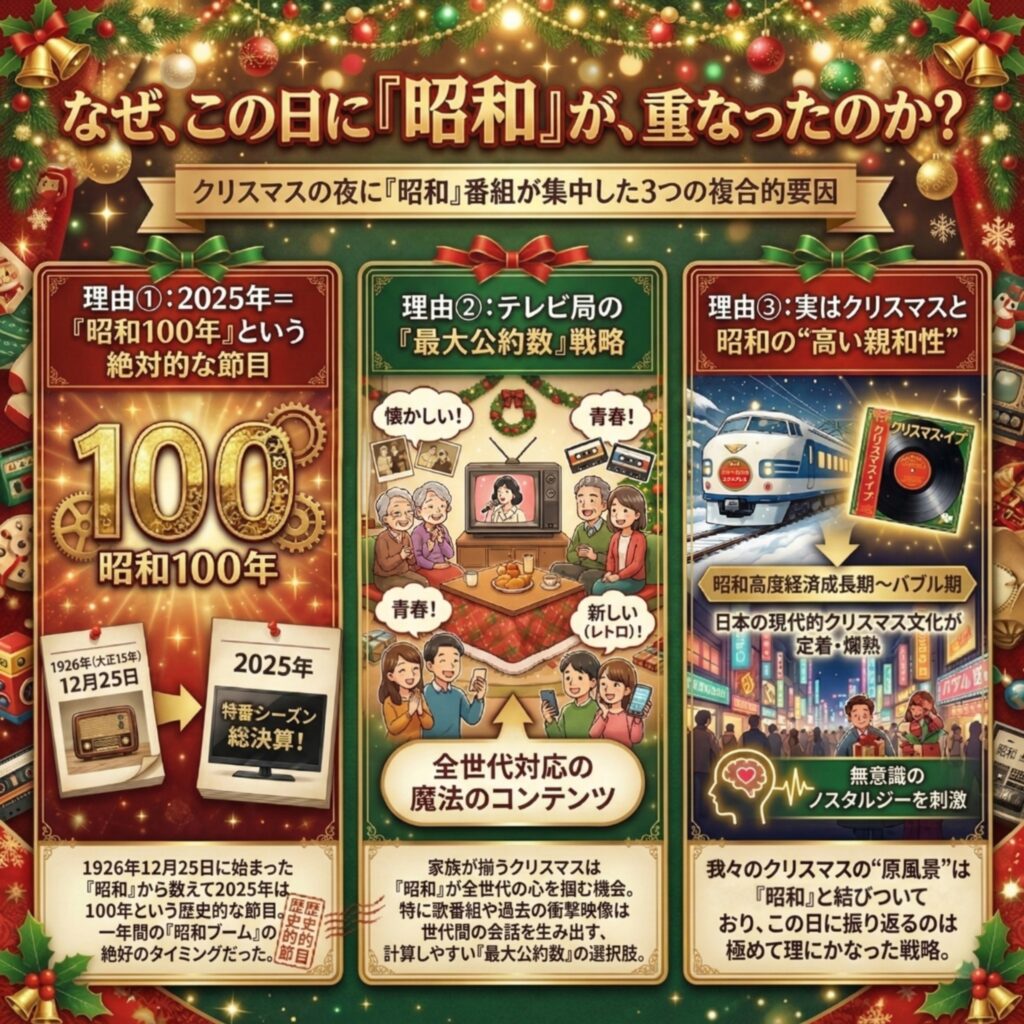 結論として2025年のクリスマスの夜にテレビが斉に「昭和」を特集したのは、単なる偶然の産物ではなかった。