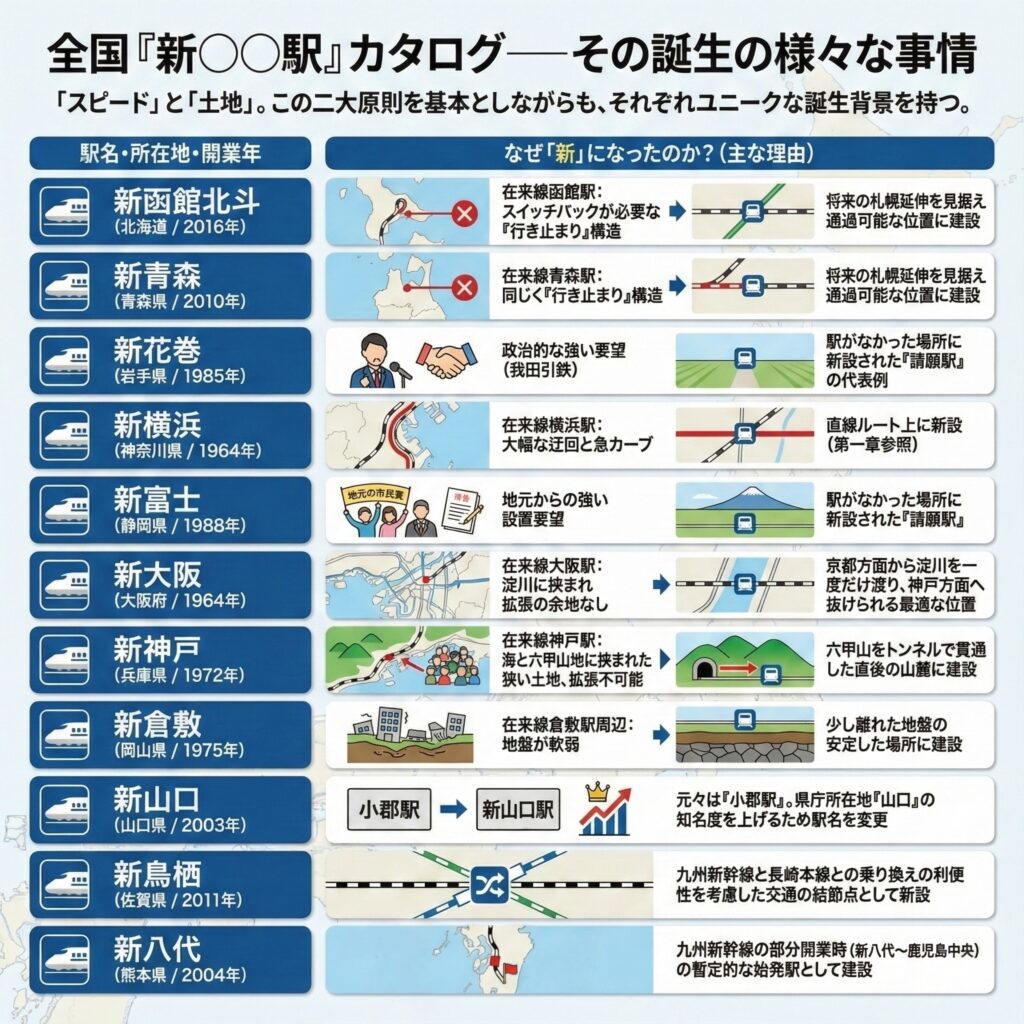 | 駅名 | 所在地 | 開業年 | なぜ「新」になったのか?(主な理由) |