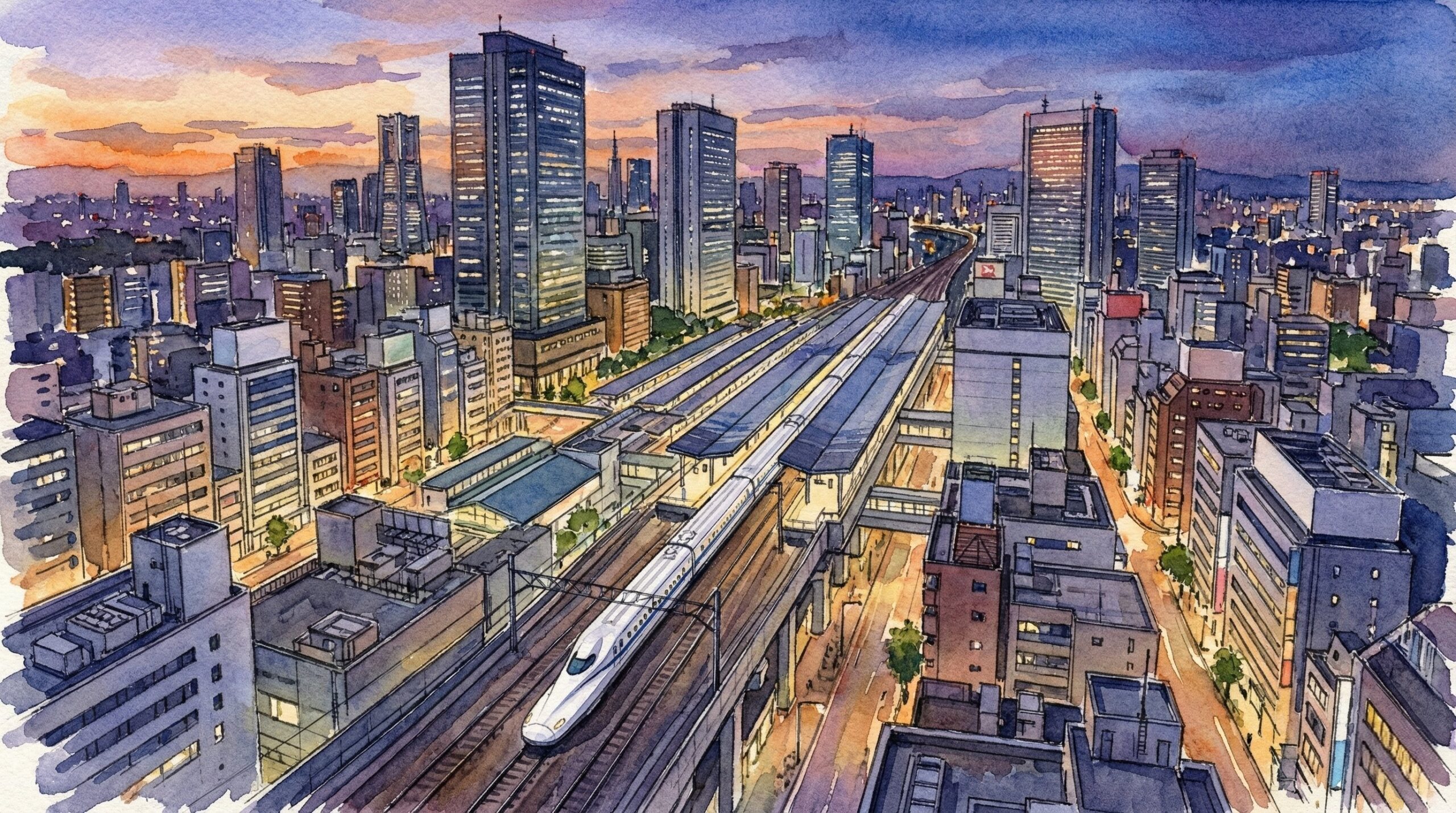 かつては何もない田園地帯だった新横浜や新大阪が、今や高層ビルが林立する一大オフィス街やビジネスハブへと変貌を遂げているその光景。