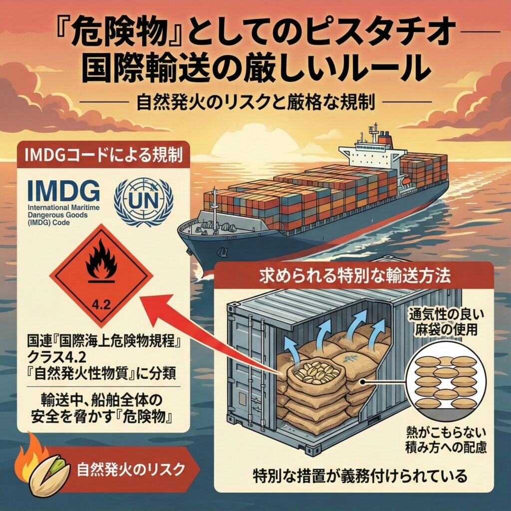 ※すべてのピスタチオが常に危険物として扱われるわけではなく、「大量・高温・密集」など特定条件下でのリスクが問題となる。