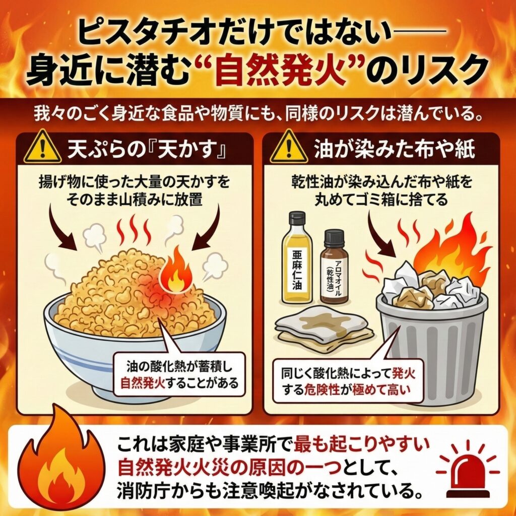第三章:ピスタチオだけではない──身近に潜む“自然発火”のリスク