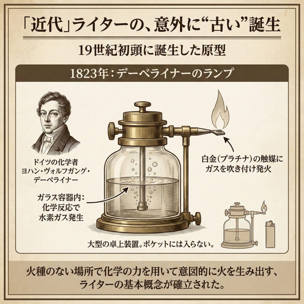 我々が知る携帯用のライターとは似ても似つかぬ姿であったが、その「原型」は19世紀初頭に既に誕生していた。