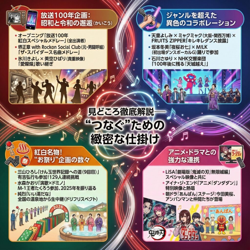 今年の紅白は単なる歌の披露に留まらない。番組全体が世代とジャンルを「つなぐ」ための緻密な仕掛けに満ちている。