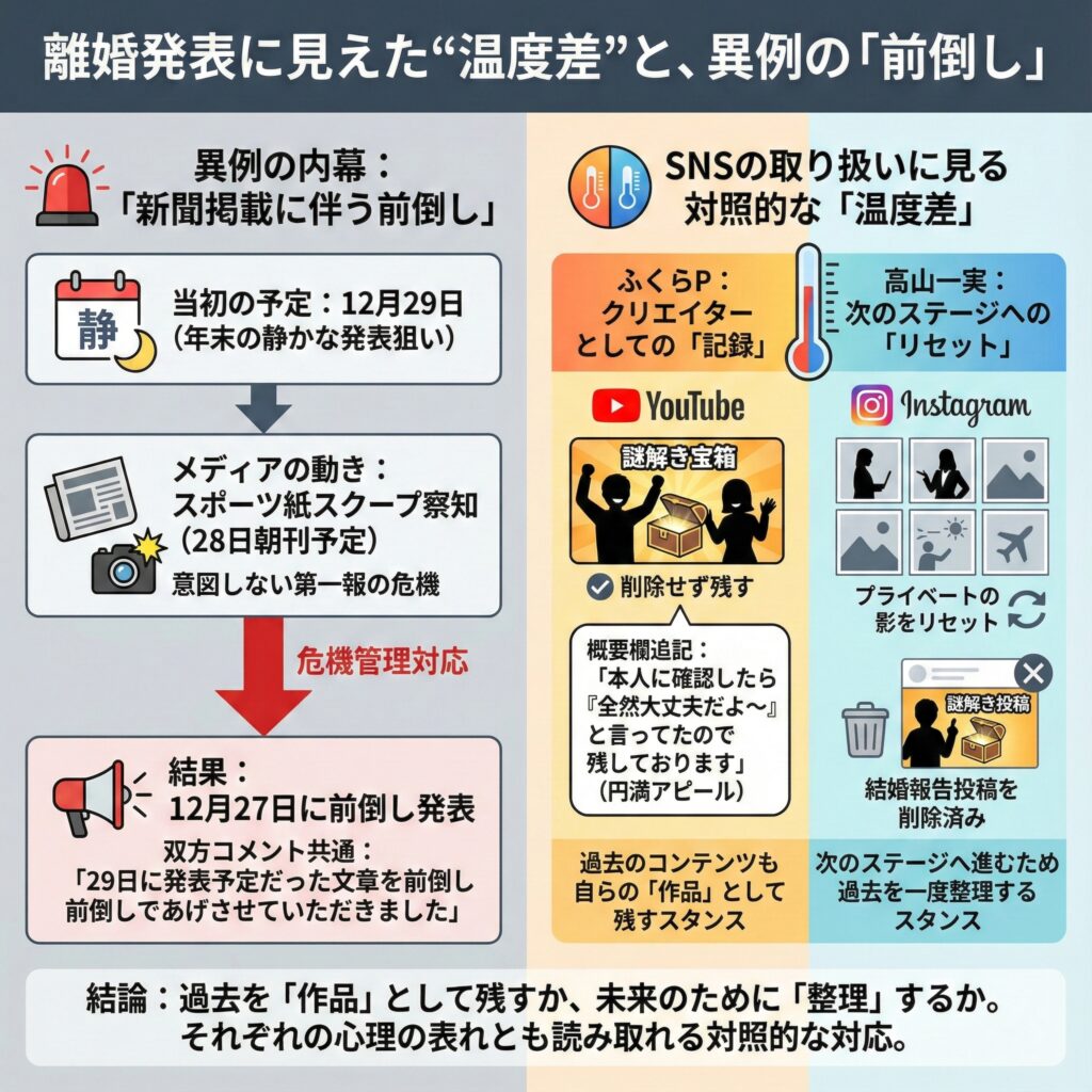 第二章:離婚発表に見えた“温度差”と、異例の「前倒し」