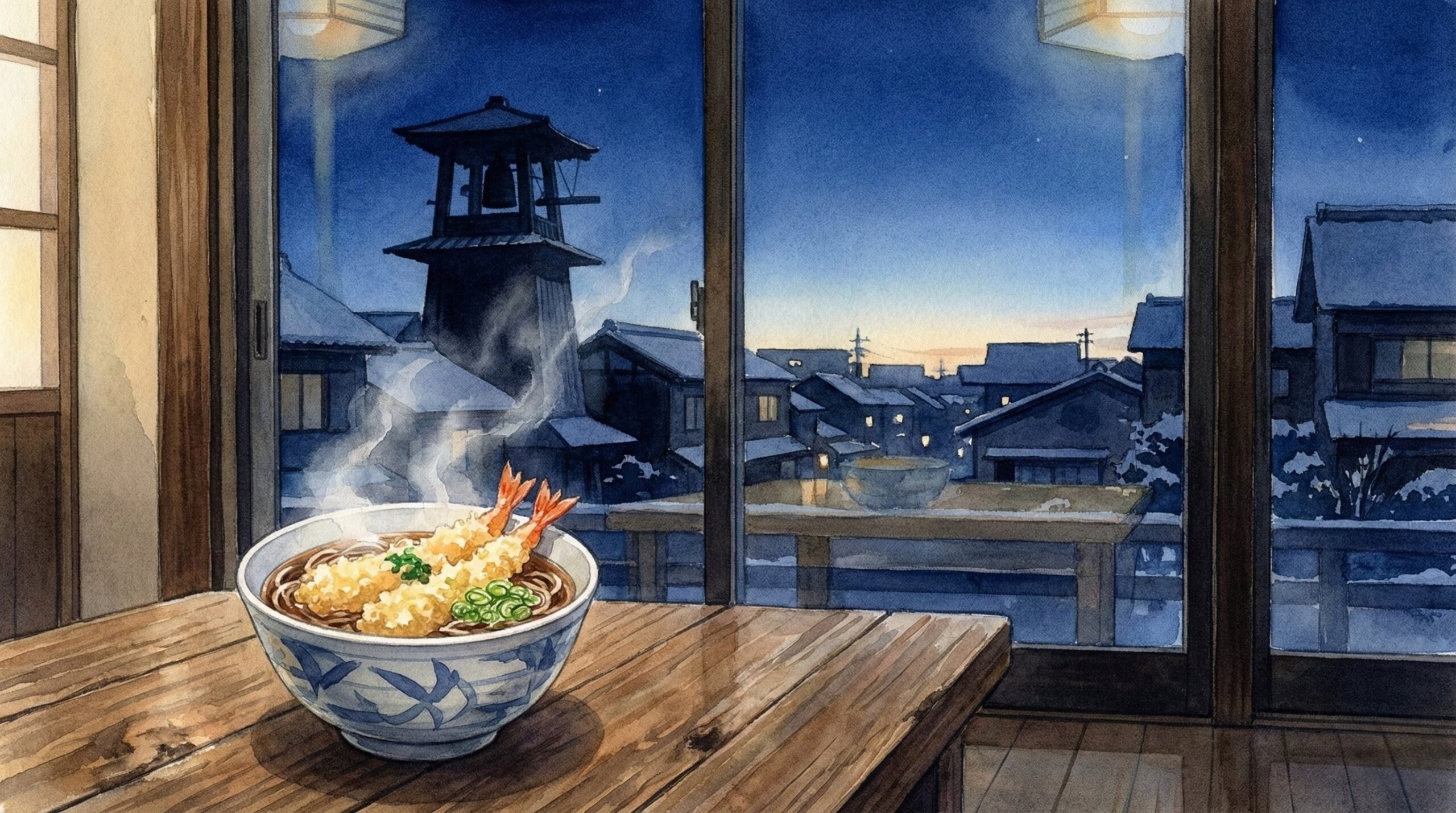 除夜の鐘が鳴り響く大晦日の夜。家族で、あるいは一人静かに湯気の立つ一杯のそばをすする。