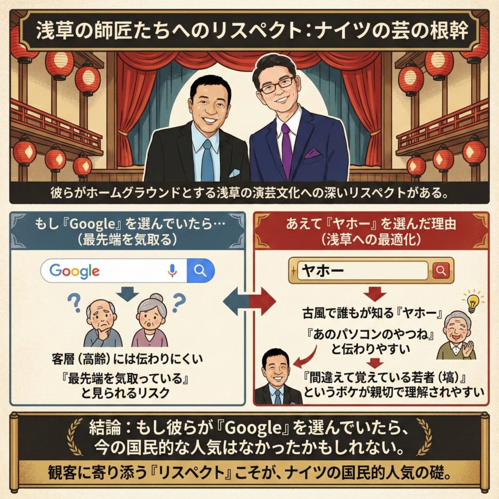 結論としてナイツが今もなお「Google」ではなく「ヤホー」で検索し続ける理由は、単なる惰性では決してない。