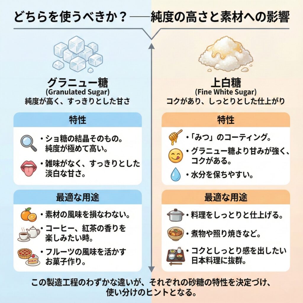 日本のどの家庭のキッチンにも、おそらく当たり前のように存在しているであろう二つの白い甘味料。「普通の砂糖(上白糖)」と「グラニュー糖」。