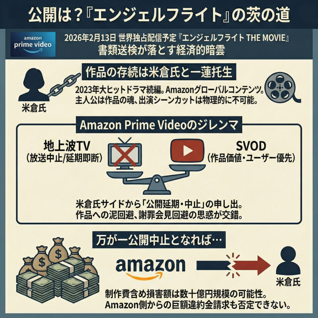 今回の書類送検が経済的に最も深刻な影を落とすのが、2月13日にAmazon Prime Videoでの世界独占配信を控えていた主演映画『エンジェルフライト THE MOVIE』の存在だ。