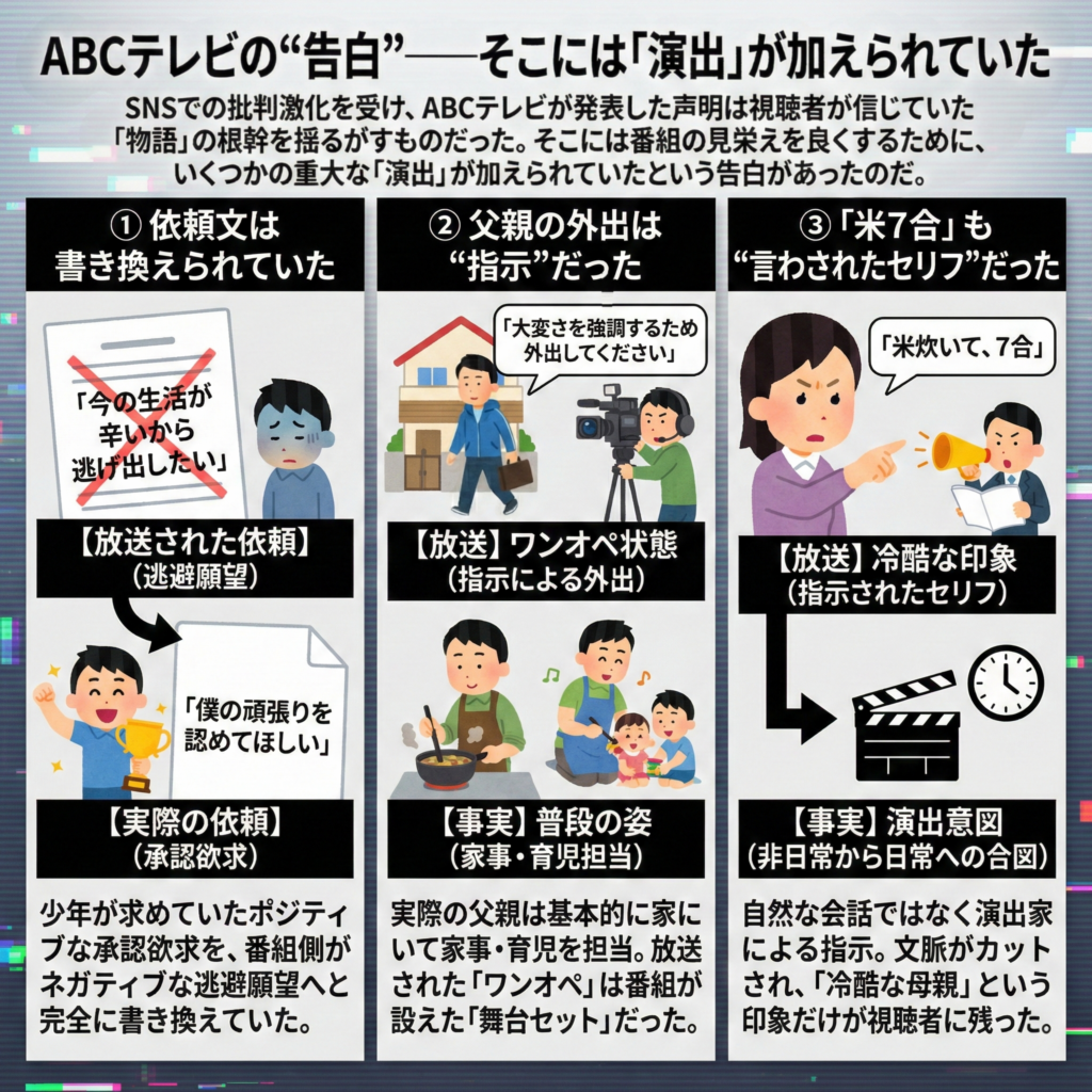 第二章:ABCテレビの“告白”──そこには「演出」が加えられていた