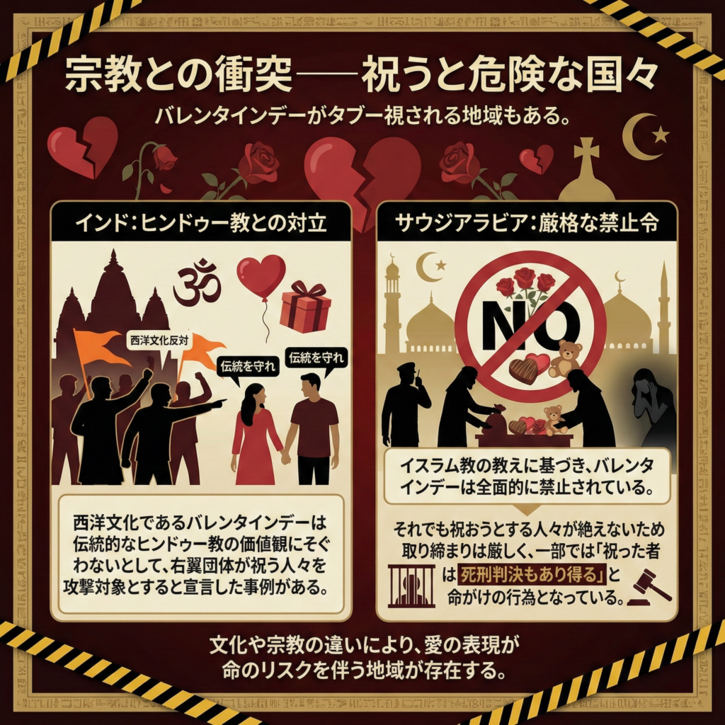 一方で、宗教的な理由からバレンタインデーがタブー視される地域もある。