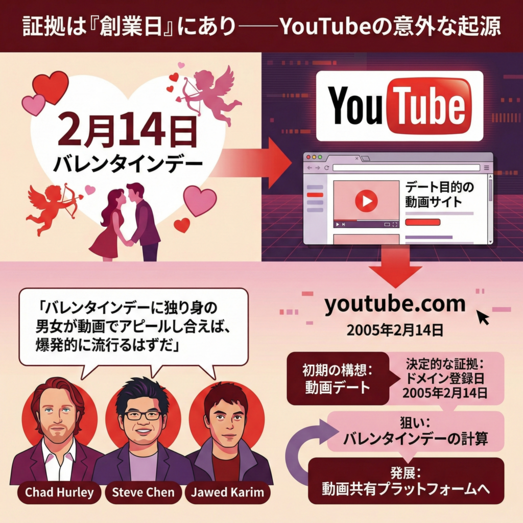 「youtube.com」が登録されたのは、2005年2月14日。そう、バレンタインデーである。