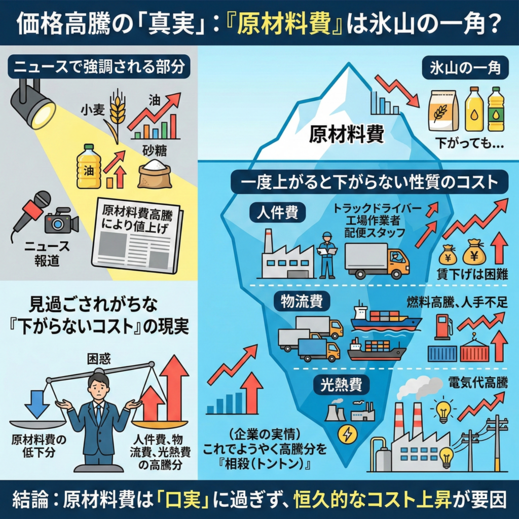 ニュースでは「原材料費」ばかりが強調されるが、商品のコスト構造はそれだけではない。