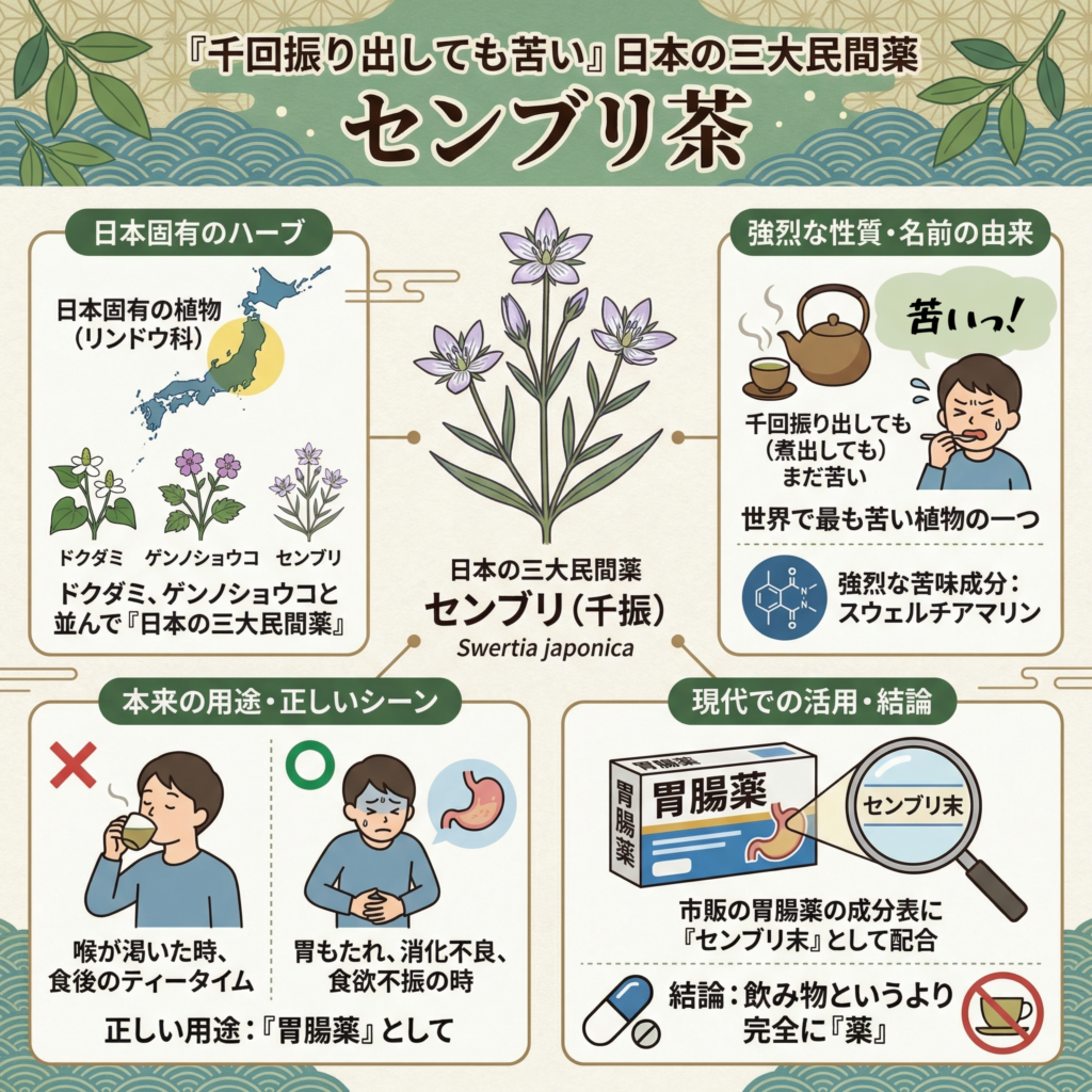 結論として、センブリ茶は喉を潤すためのものではなく、「強烈な苦味で脳を刺激し、胃腸を目覚めさせるための伝統的なスイッチ」であった。