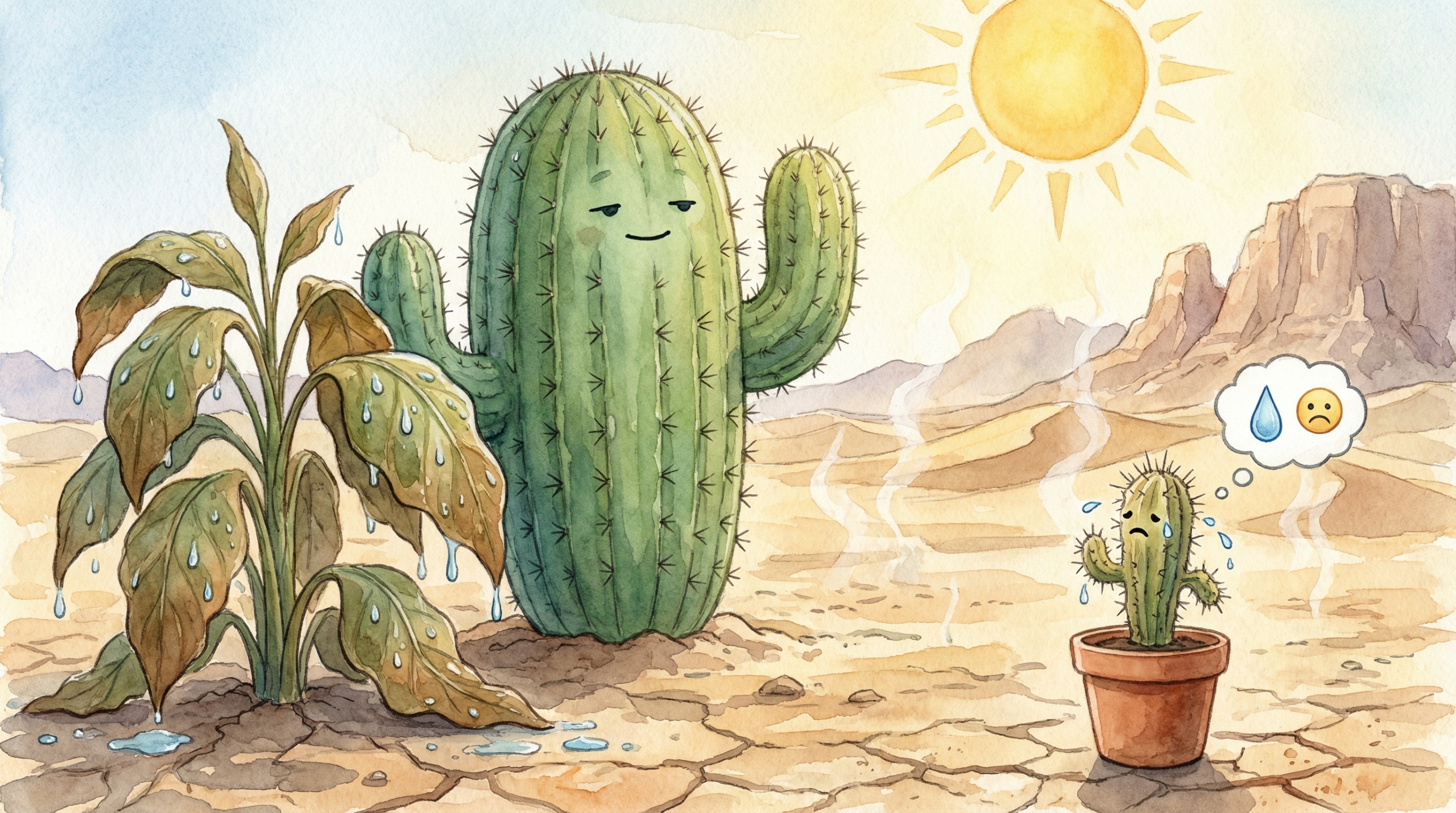 - 手のひらに乗るような小さな鉢植えで売られている「生まれたてのサボテン」は、体内に蓄えられる水分の絶対量が少なすぎる。