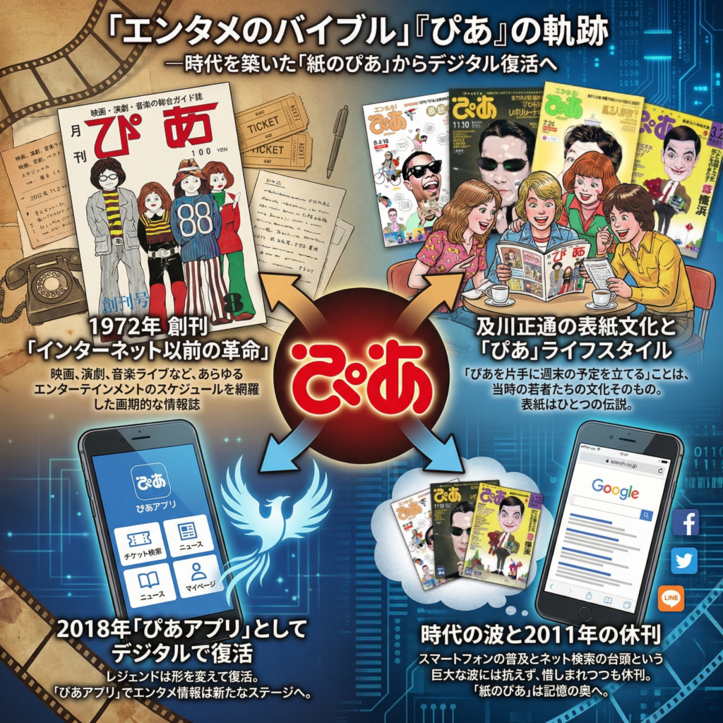 しかし、スマートフォンの普及とネット検索の台頭という巨大な波には抗えず、2011年、惜しまれつつも休刊。その後、2018年には「ぴあアプリ」としてデジタル上で復活を果たしていたが、「紙のぴあ」の存在感は静かに記憶の奥へとしまわれていた。