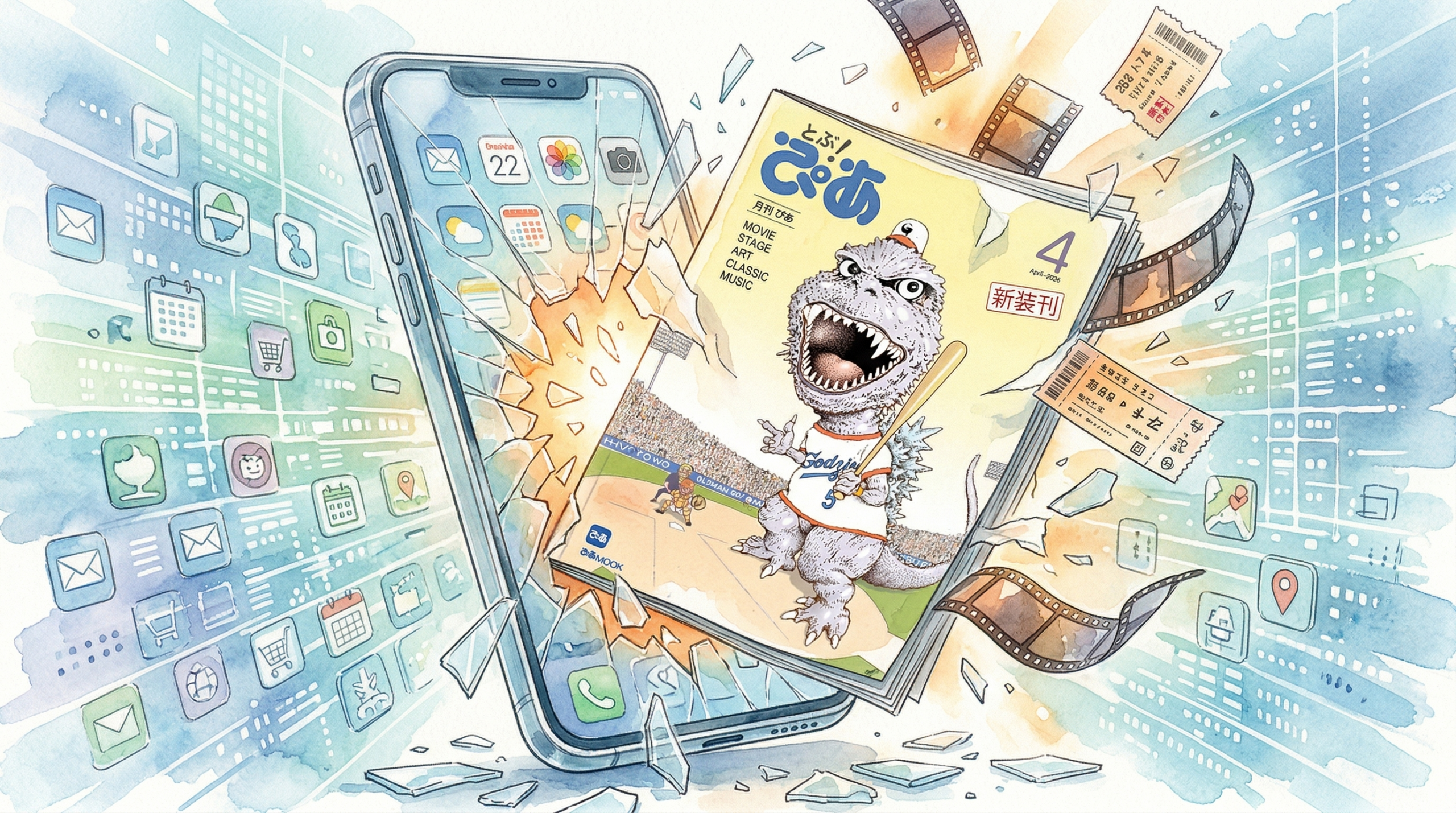 - 片面は網羅的な情報リスト、もう片面は独自の特集記事という「両面表紙」構造を採用。そして、情報面の表紙には「同一雑誌の表紙イラスト制作者として世界一長いキャリア」のギネス世界記録を持つ及川正通氏のイラストが帰還した。創刊号ではゴジラと吉沢亮さんが描かれ、往年のファンを歓喜させている。