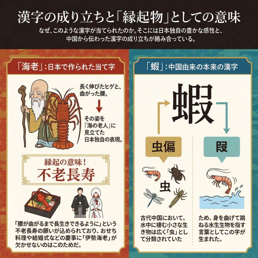 それは、「重武装で海底を歩く者(海老)」と、「身軽に海中を泳ぐ者(蝦)」という、二つの異なる進化の形を正確に区別するための、極めて合理的な漢字の使い分けであった。