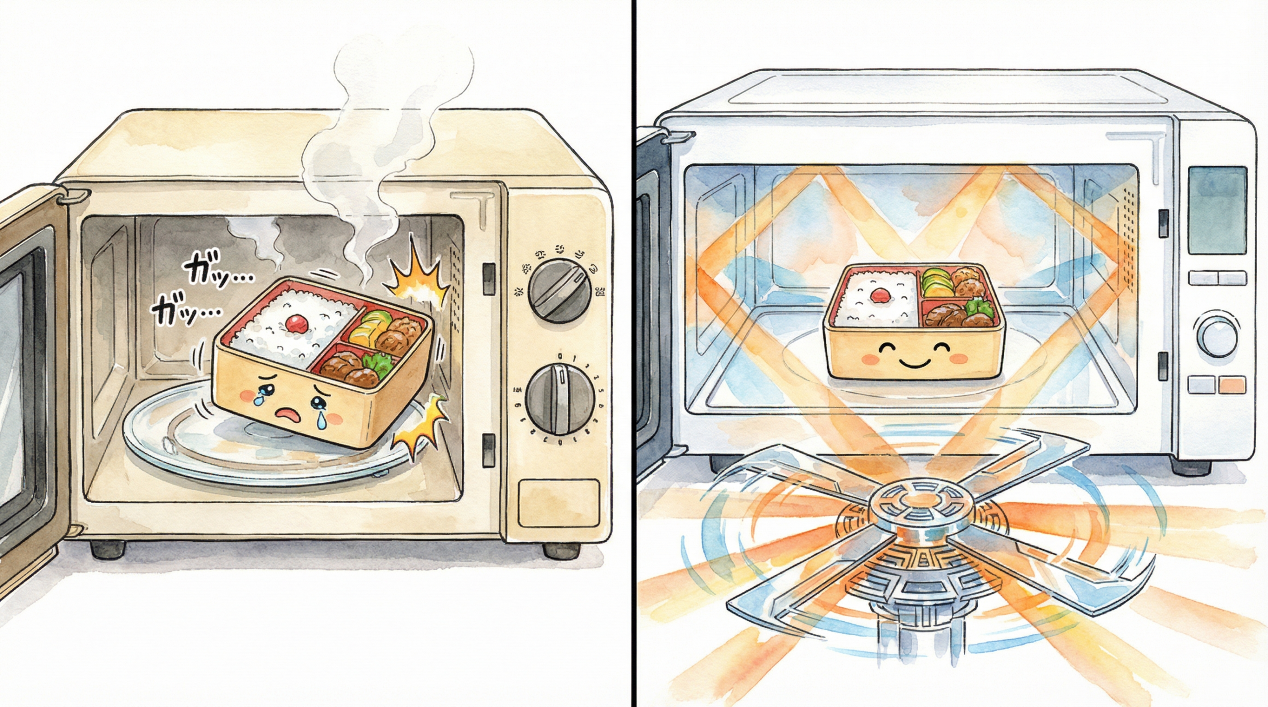 なぜ、電子レンジは回らなくなったのか。あるいは、なぜ昔は回さなければならなかったのか。