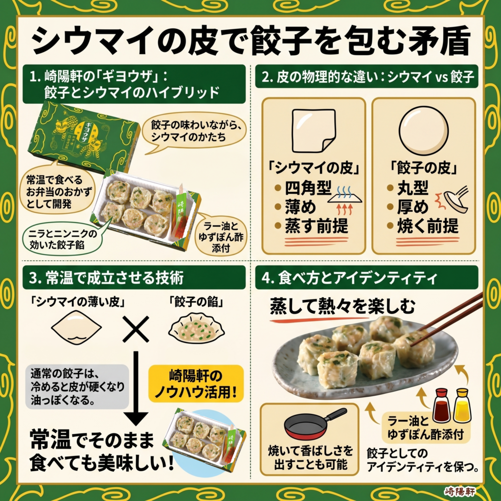 本稿は、崎陽軒が仕掛けた高度なPR戦略と、あえて「ギョーザ」ではなく「ギヨウザ」と名付けられた理由、そして餃子とシウマイの境界線に挑んだ商品設計の裏側を解き明かすレポートである。