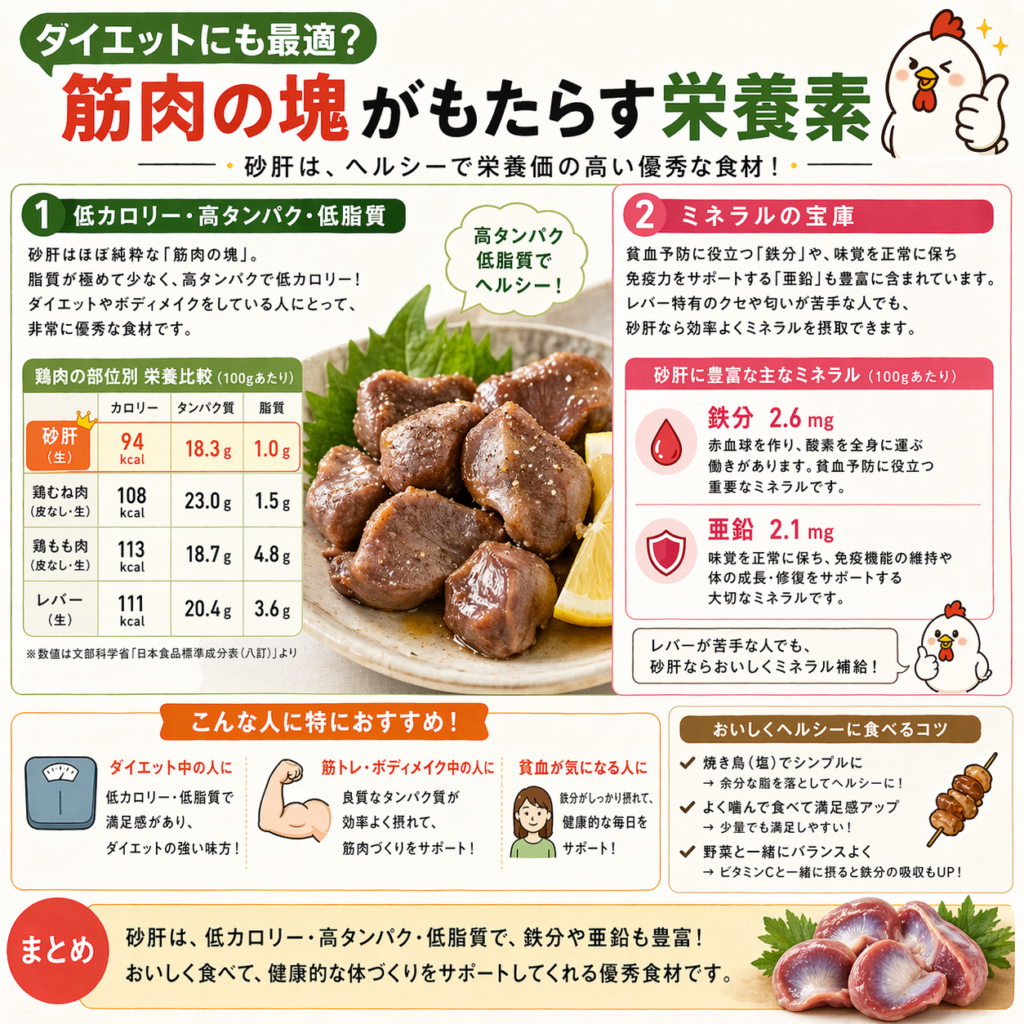 最後に、砂肝が持つ栄養学的なメリットにも触れておく。