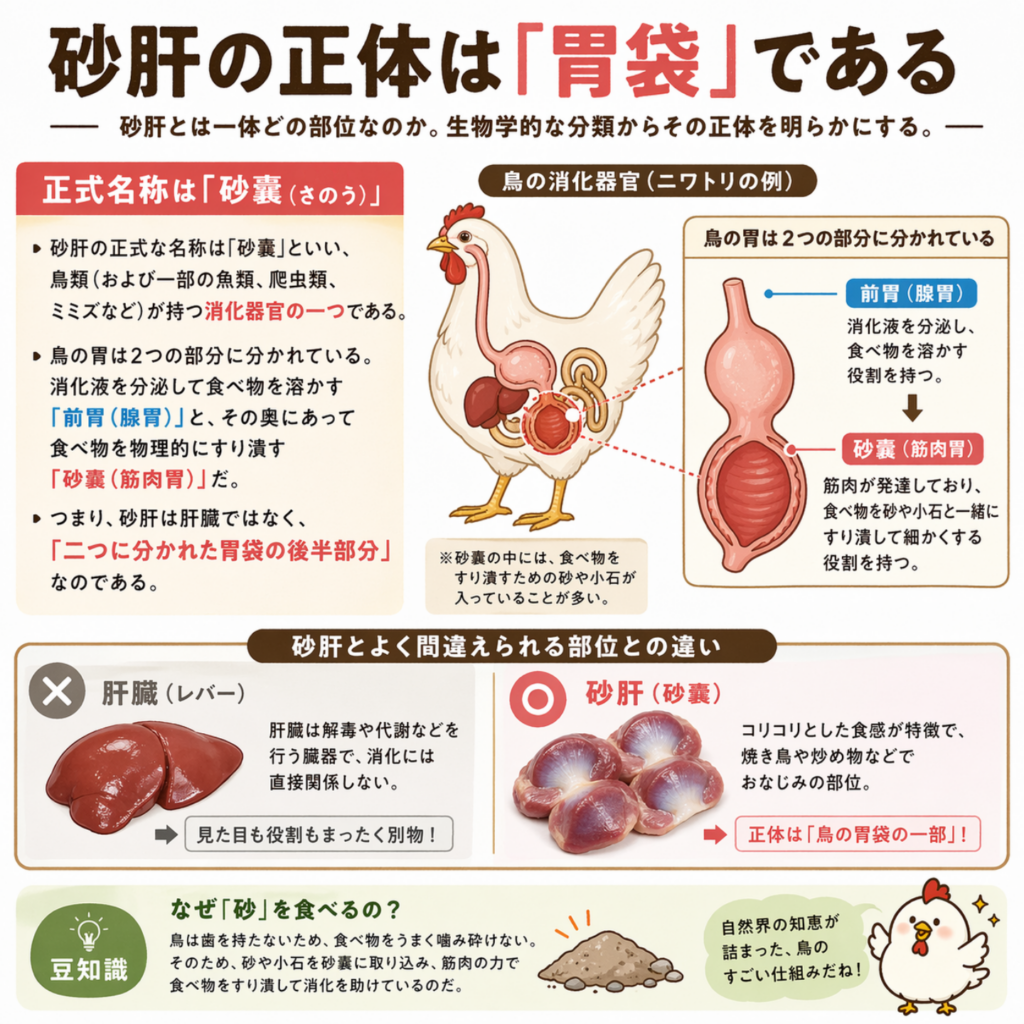 砂肝とは一体どの部位なのか。生物学的な分類からその正体を明らかにする。