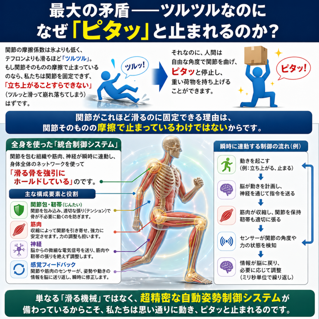 氷よりも滑るのに、なぜ私たちは“立てる”のか?──現代科学が敗北する「関節」の超絶摩擦係数